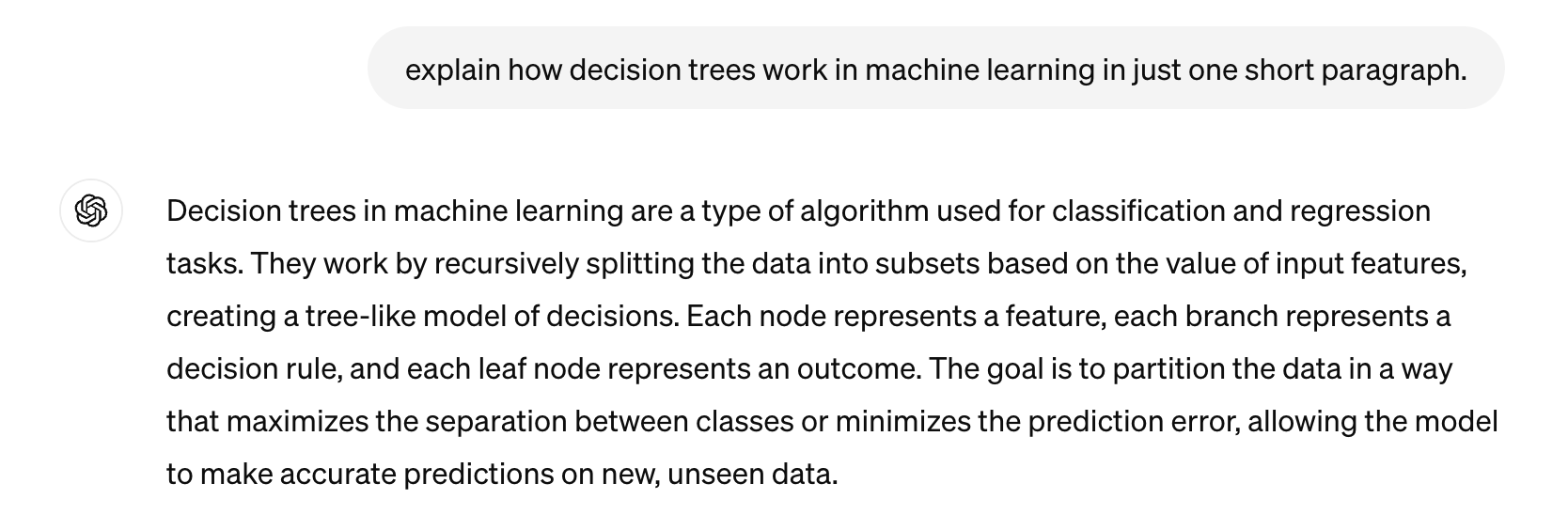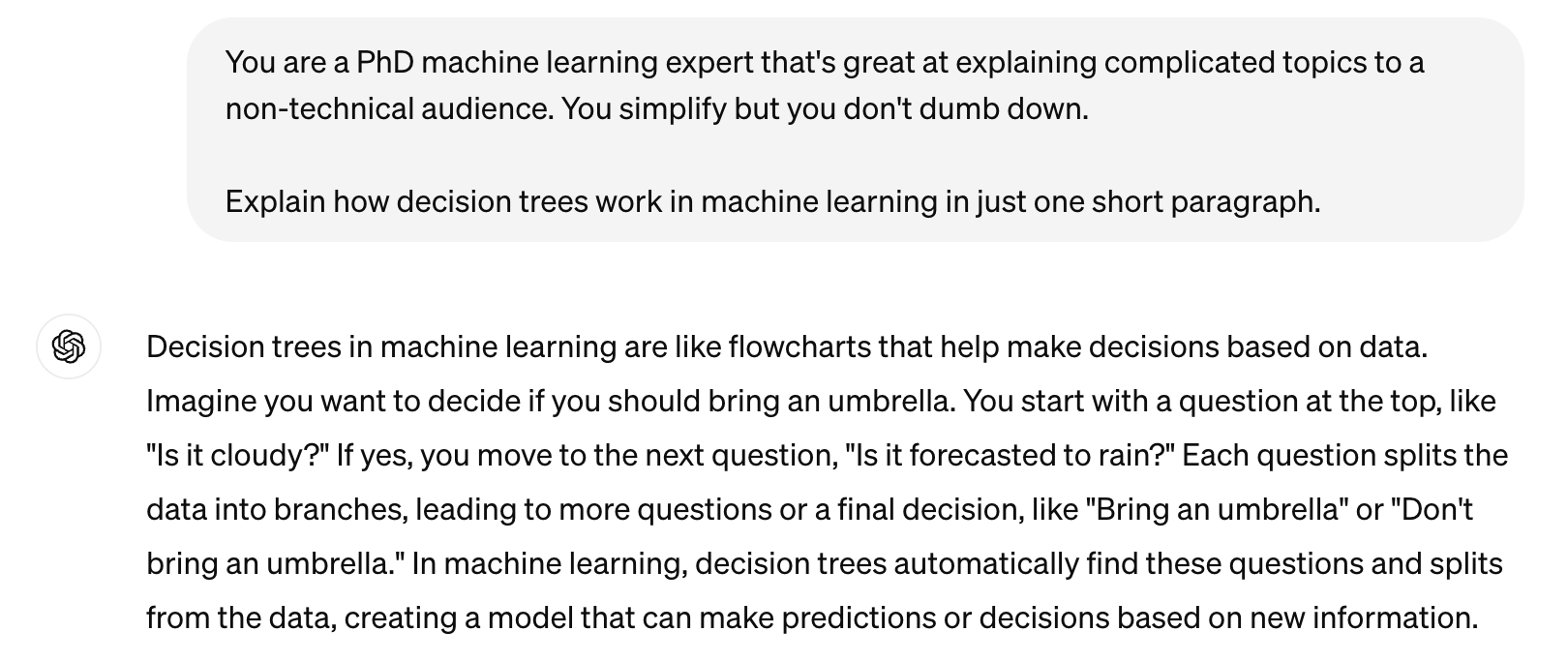 I prefer this response and it’s what the Machine Learning Tutor GPT is set up for.